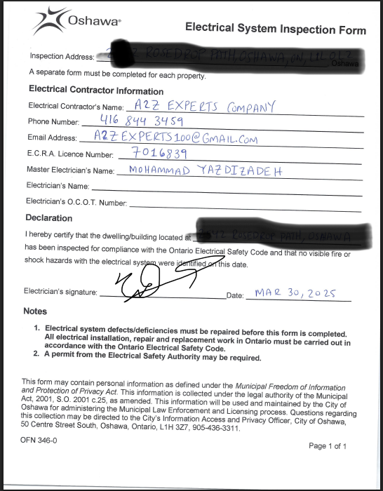 City Safety Inspections & Certificates What We Do We inspect and provide electrical certificates for your house for city requirements Request a Quote Today Reach Us Email : A2Zexperts100@gmail.com Phone : +1 416 844 3459 Please enable JavaScript in your browser to complete this form.NameEmail *Contact NoPurpose Of Contact *Comment or Message *MessageRequest Call